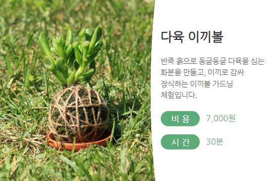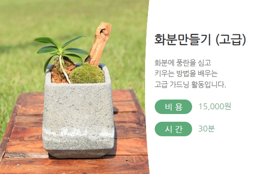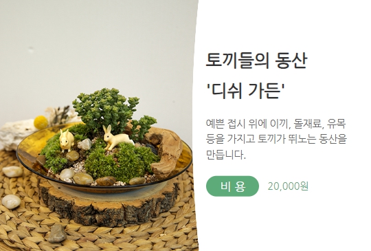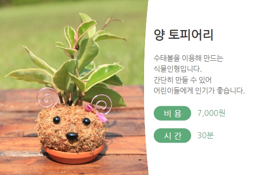 자연감성을 자극하는 가드닝 및 만들기 프로그램과 각종 정원 소품들을 판매합니다.