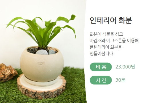 복잡하고 답답한 일상 속 아름다운 힐링, 다양한 원예기술을 배우며 직접 화분 속 미니정원을 만들어보는 원데이 클래스입니다.
