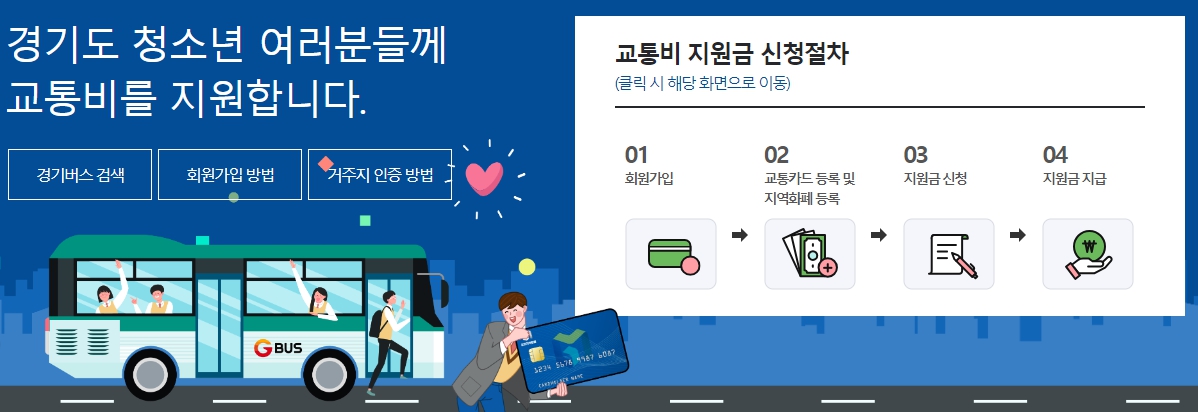 신청일 기준, 거주기간 제한 없이 경기도에 거주하며, 교통카드로 경기도 대중교통 이용한 청소년