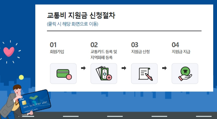 2. 신규회원은 회원가입 → 교통카드등록 → 지역화폐 등록 → 신청