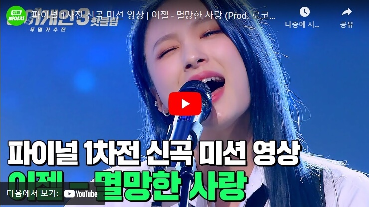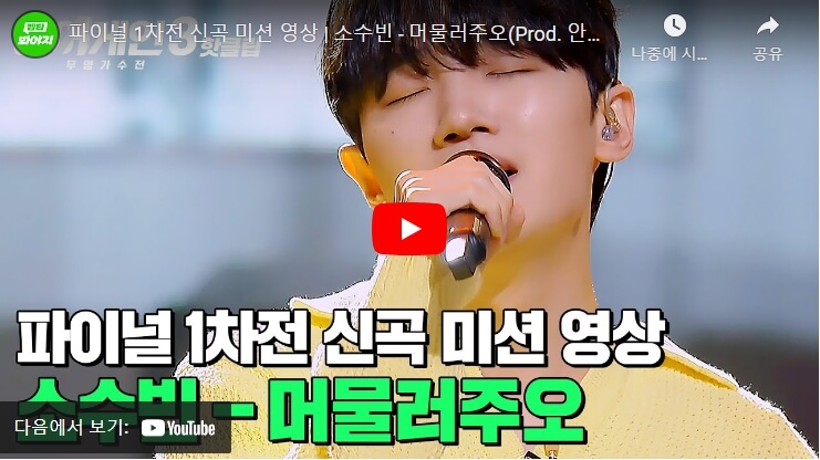 사실, 여기서 경연을 멈추고 그냥 노래만 감상했으면 좋겠는 마음입니다. 모두 너무 뛰어난 가수들이라 심사위원도 심사하는 내내 힘드실 것 같아요. Top7 모두를 응원하며 오늘도 투표 마치고 무한반복 하며 신곡 영상 보고 좋아요 버튼 누르고 있습니다. 여러분도 내가 응원하는 가수에게 투표와 영상시청으로 응원해보시기 바랍니다.