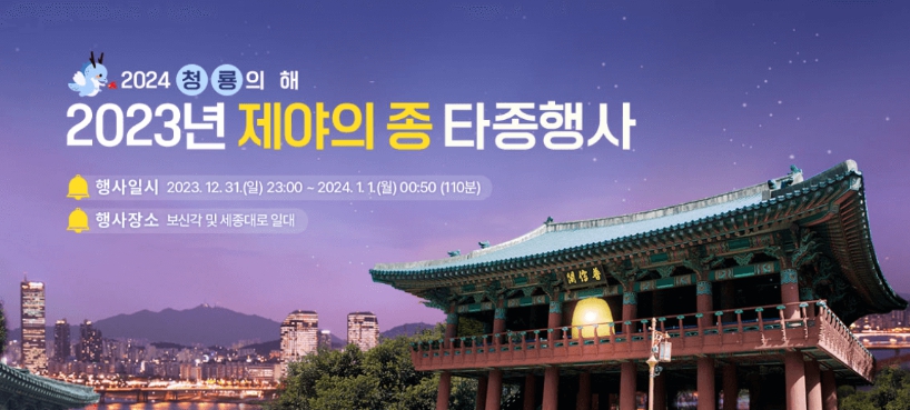 2023년이 이제 몇 시간 남지 않았습니다. 이제 곧 2024년 청룡의 해를 알리는 제야의 종소리가 울려 퍼질 텐데요. 타종 소리와 함께 서울에 지름 12m 초대형 자정의 태양이 떠오른다고 합니다. 한 해의 마무리와 새로운 출발을 위해 서울 제야의 종 타종행사 참석하시는 분들이 많으실 텐데요. 행사 위치 및 늦은 시간 이용할 수 있는 지하철 버스 정보 및 자동차 이용 시 실시간 교통정보도 자세히 알려드리도록 하겠습니다.