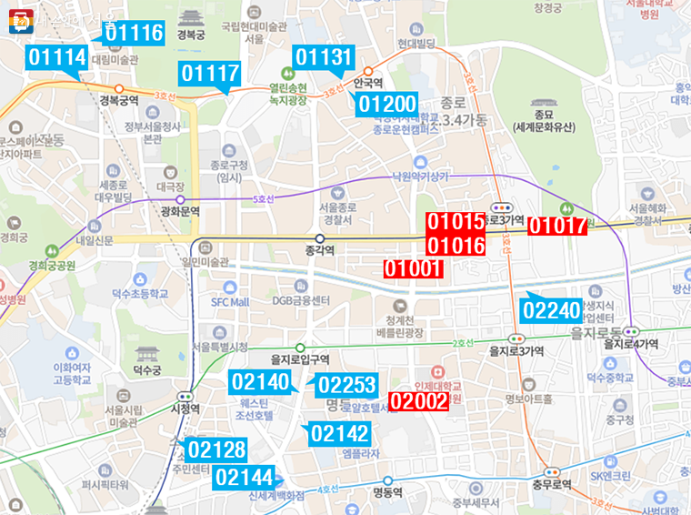 ※ 1. 1.(월) 02시 막차 통과 정류소: 을지로입구역, 종로3가역, 안국역 등