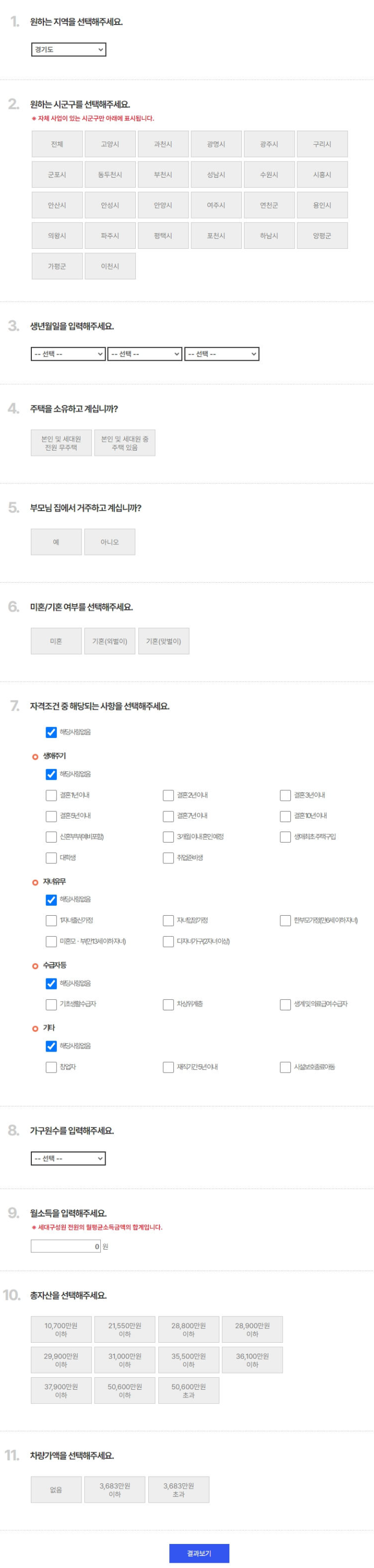 내게 맞는 주거 정책 찾기 위한 자가진단